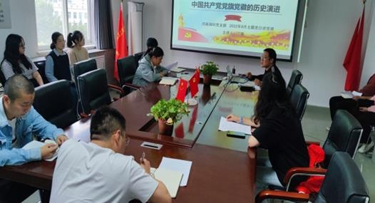 2022年9月2日,河南潤環黨支部召開第九次支部會議,支部所有黨員、入黨積極分子和公司員工全體列席會議,集中學習中國共產黨黨旗黨徽的歷史演變的專題黨課暨《中國共產黨黨徽黨旗條例》。林山寨街道農業銀行社區黨支部王老師列席會議并指導工作。