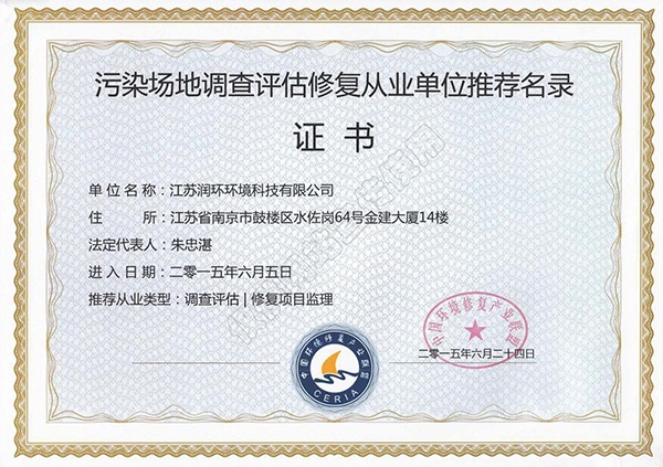 污染場(chǎng)地調(diào)查評(píng)估修復(fù)從業(yè)單位推薦名錄證書