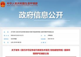 生態(tài)環(huán)境部關(guān)于發(fā)布《排污許可證申請(qǐng)與核發(fā)技術(shù)規(guī)范 危險(xiǎn)廢物焚燒》國(guó)家環(huán)境保護(hù)標(biāo)準(zhǔn)的公告