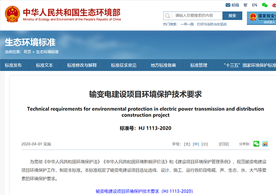 2020年2月27日,生態環境部發布《輸變電建設項目環境保護技術要求》(HJ 1113-2020)