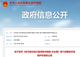 2020年1月6日,生態環境部發布了《排污單位自行監測技術指南 水處理》(HJ1083-2020)、《排污單位自行監測技術指南 食品制造》(HJ1084-2020)