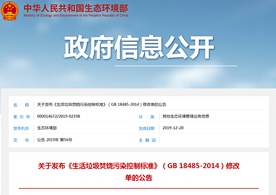 2019年12月20日,生態環境部發布了《生活垃圾焚燒污染控制標準》(GB 18485-2014)修改單