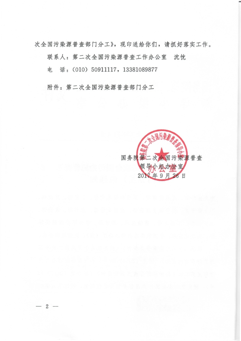 國污普【2017】4號關于印發《第二次全國污染源普查部門分工》的通知