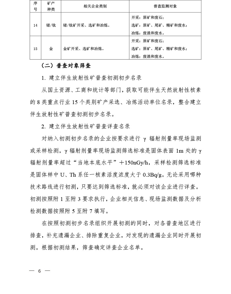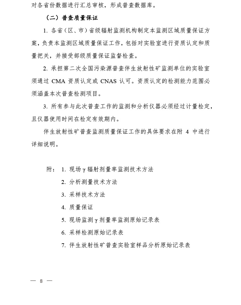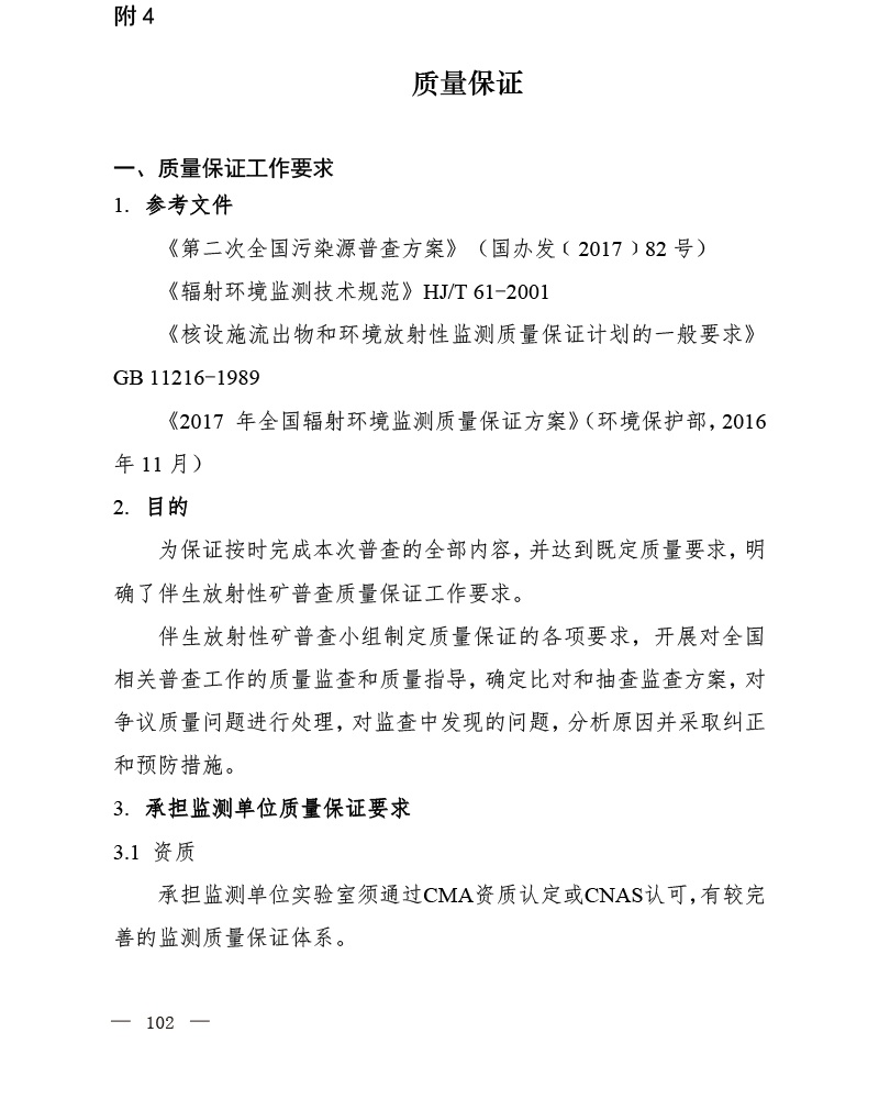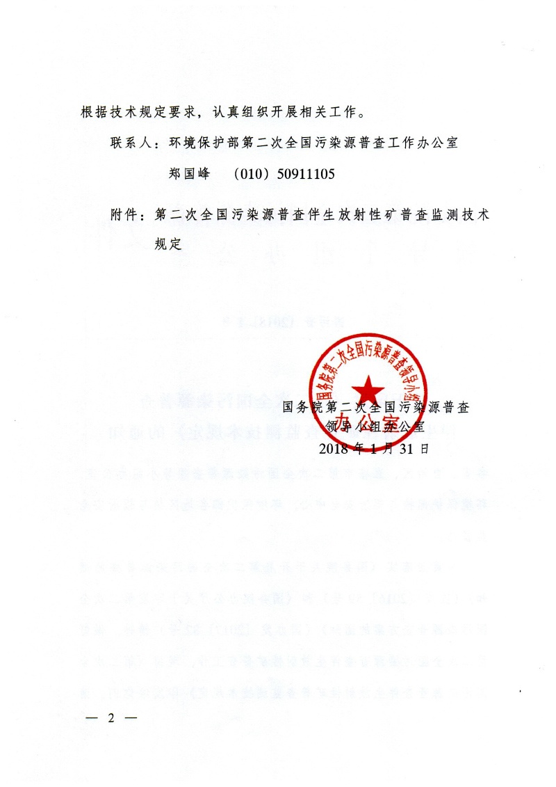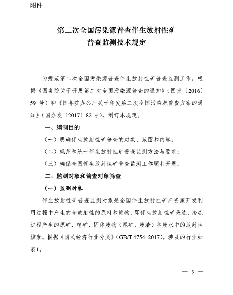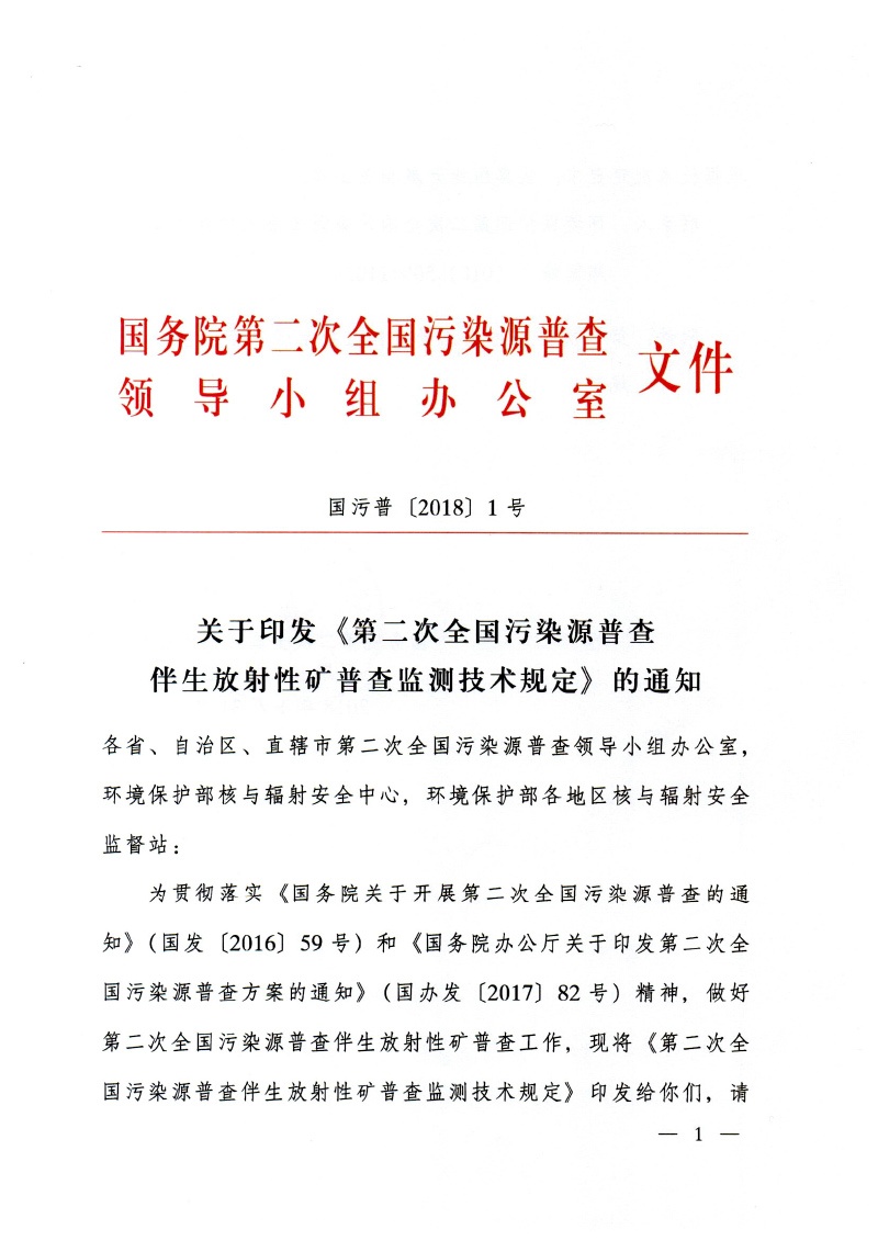 國污普【2018】1號關于印發《第二次全國污染源普查伴生放射性礦普查檢測技術規定》的通知全文