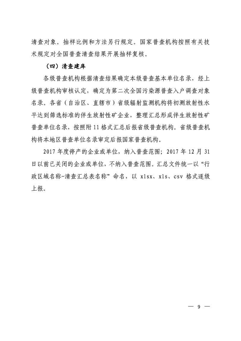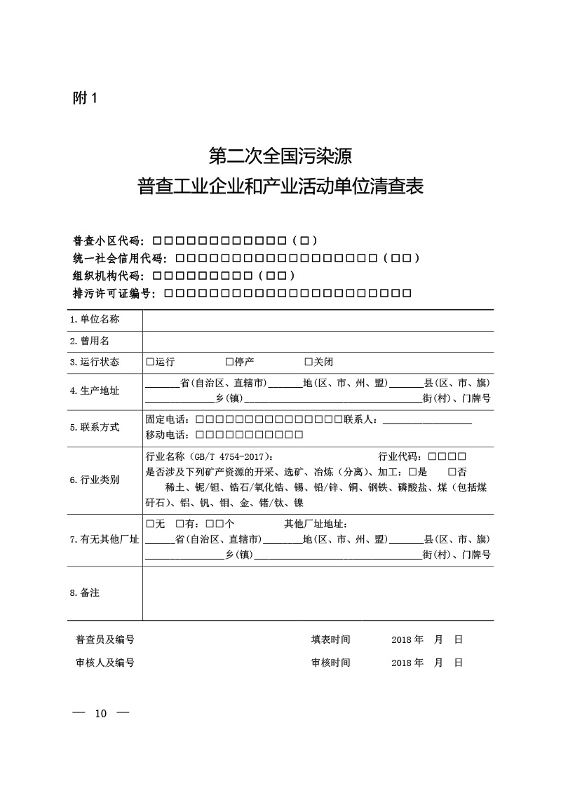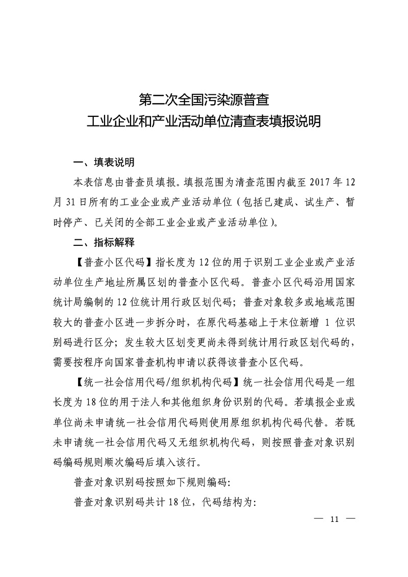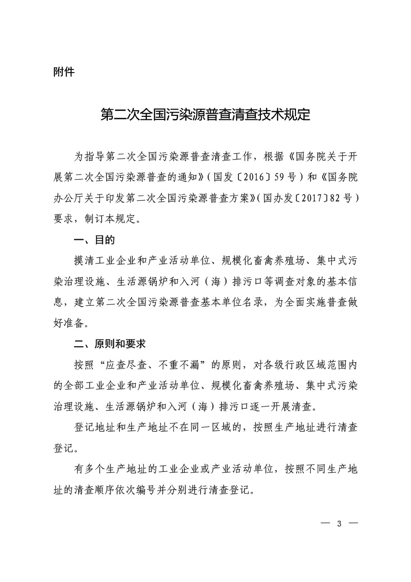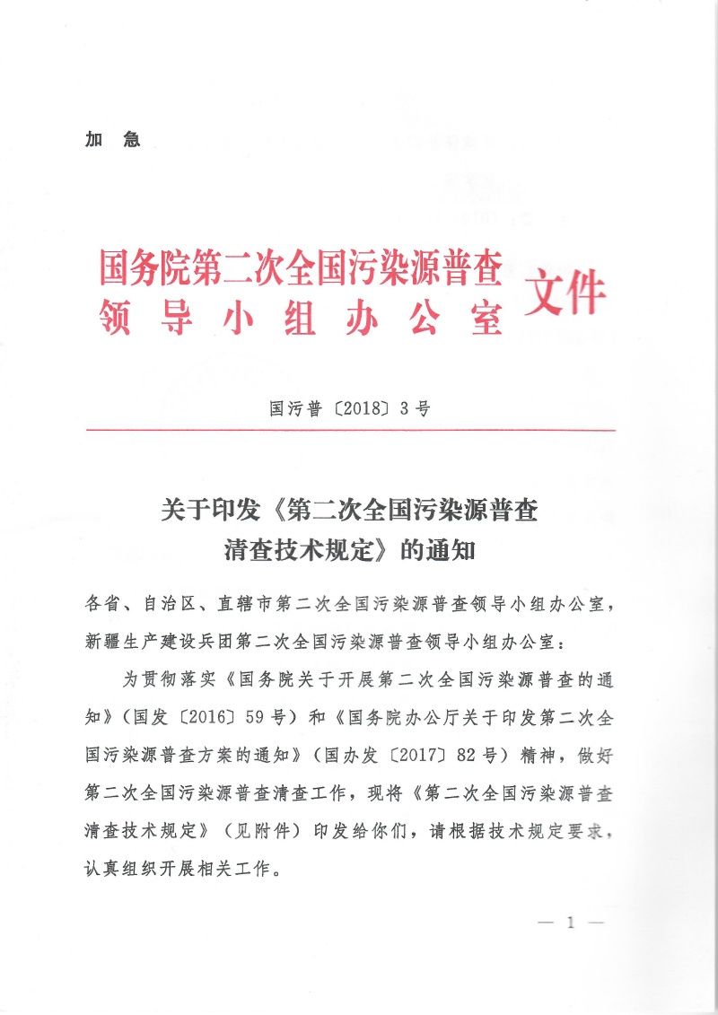 國污普【2018】3號關于印發《第二次全國污染源普查清查技術規定》的通知