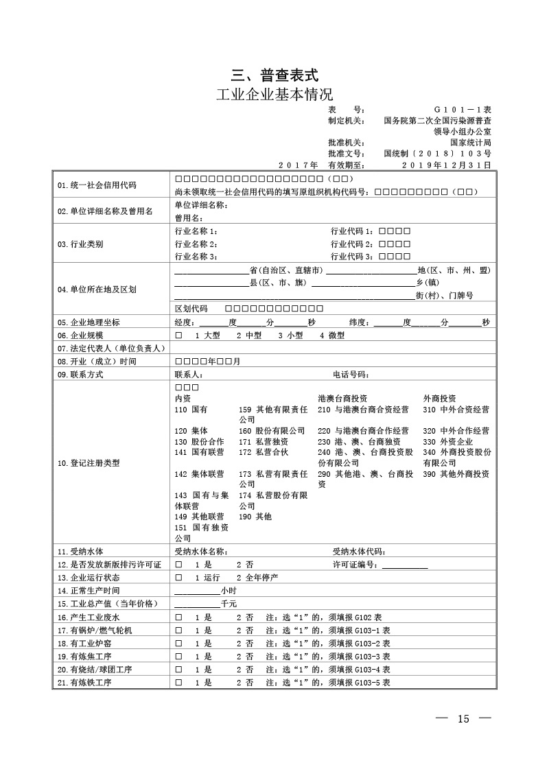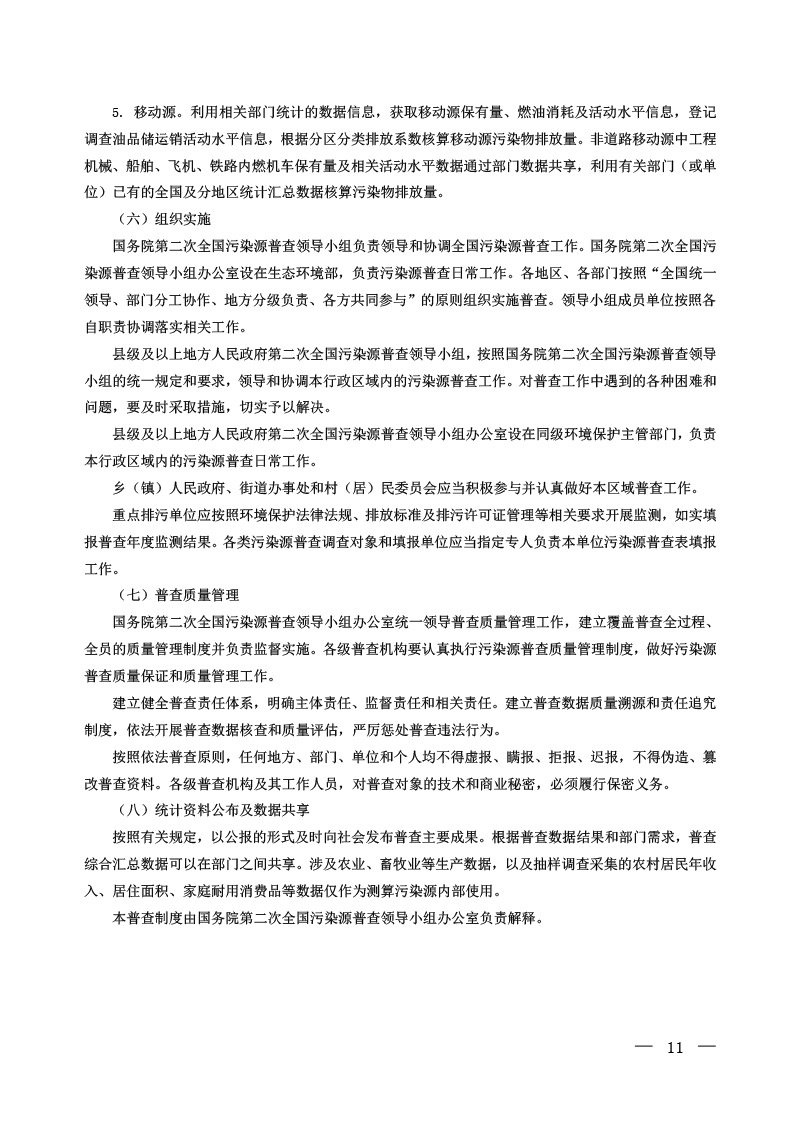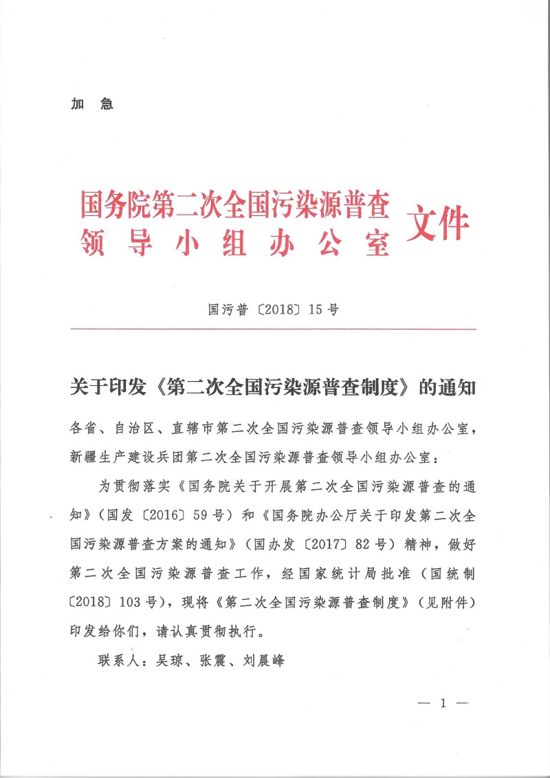 國污普【2018】15號關于印發第二次全國污染源普查制度的通知