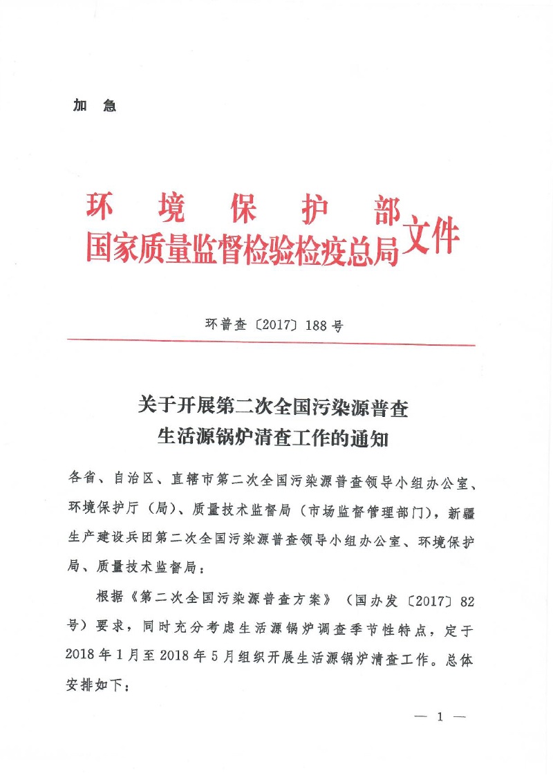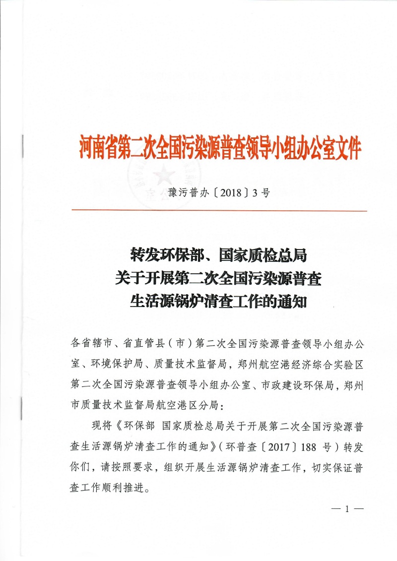 豫污普辦【2018】3號轉(zhuǎn)發(fā)環(huán)保部、國家質(zhì)檢總局關(guān)于開展第二次全國污染源普查生活源鍋爐清查工作的通知