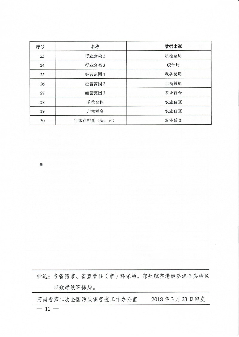 上一篇:豫污普辦【2018】9號關于做好河南省普查員和普查指導員選聘及管理工作通知 下一篇:豫污普辦【2018】11號轉發國務院第二次全國污染源普查領導小組辦公室關于印發第二次全國污染源普查清查技術規定的通知