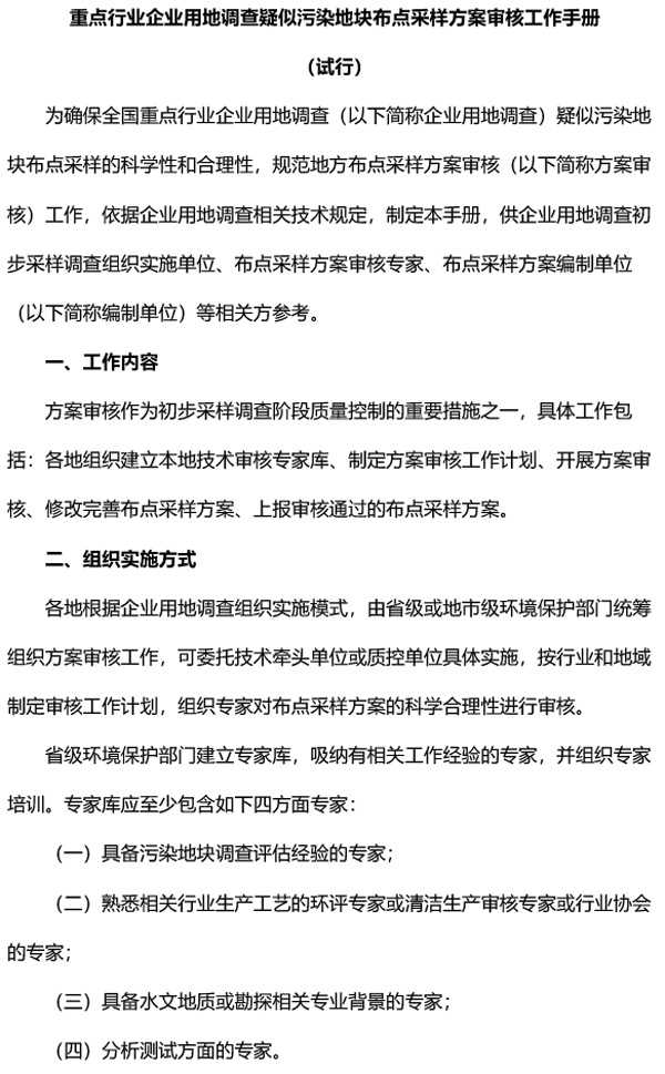 重點行業企業用地調查疑似污染地塊布點采樣方案審核工作手冊