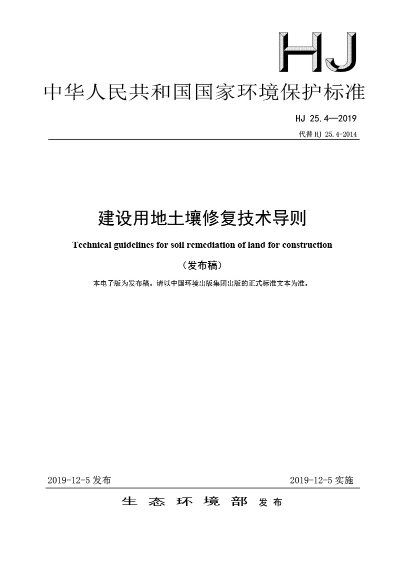 建設用地土壤修復技術導則( HJ 25.4-2019 )